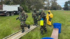 - Ejercicio de descontaminación de agentes involucrados en un accidente con material radiactivo