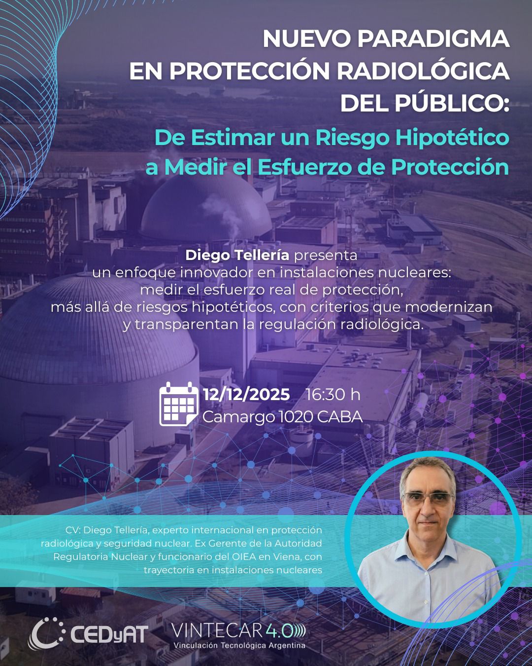 Es experto internacional en protección radiológica y seguridad nuclear, formado en Ciencias de la Atmósfera (UBA-Exactas) con posgrado en Seguridad Radiológica y Nuclear (CNEA/UBA-Ingeniería). Cuenta con 40 años de experiencia profesional, incluyendo su desempeño como Gerente de Seguridad Radiológica y Nuclear en la Autoridad Regulatoria Nuclear Argentina y dos décadas en el Organismo Internacional de Energía Atómica (IAEA) en Viena, en funciones técnicas, normativas y de cooperación internacional vinculadas a la protección del público y el ambiente en instalaciones nucleares.